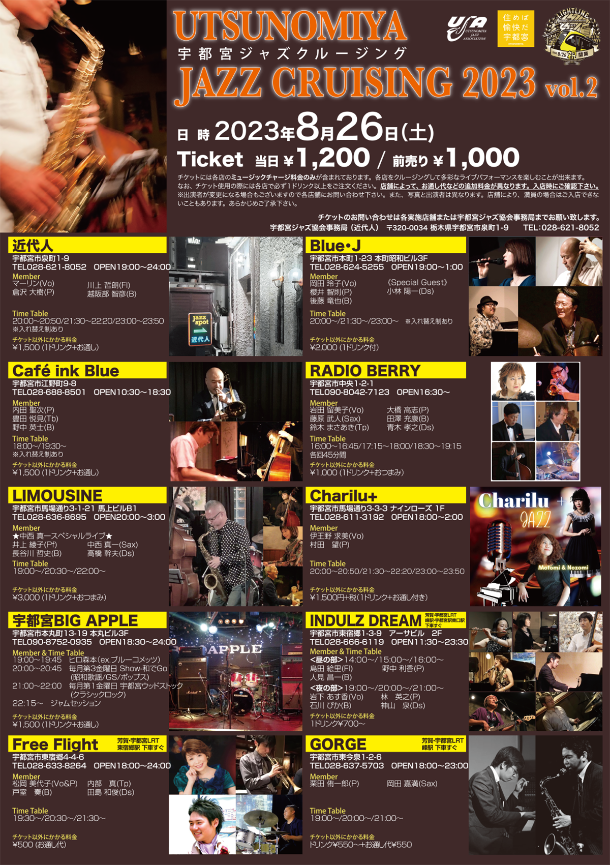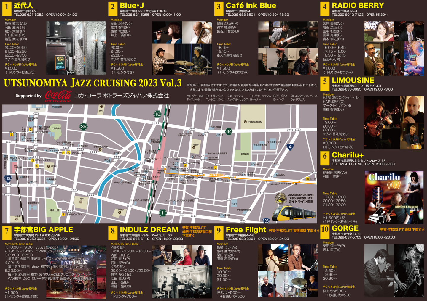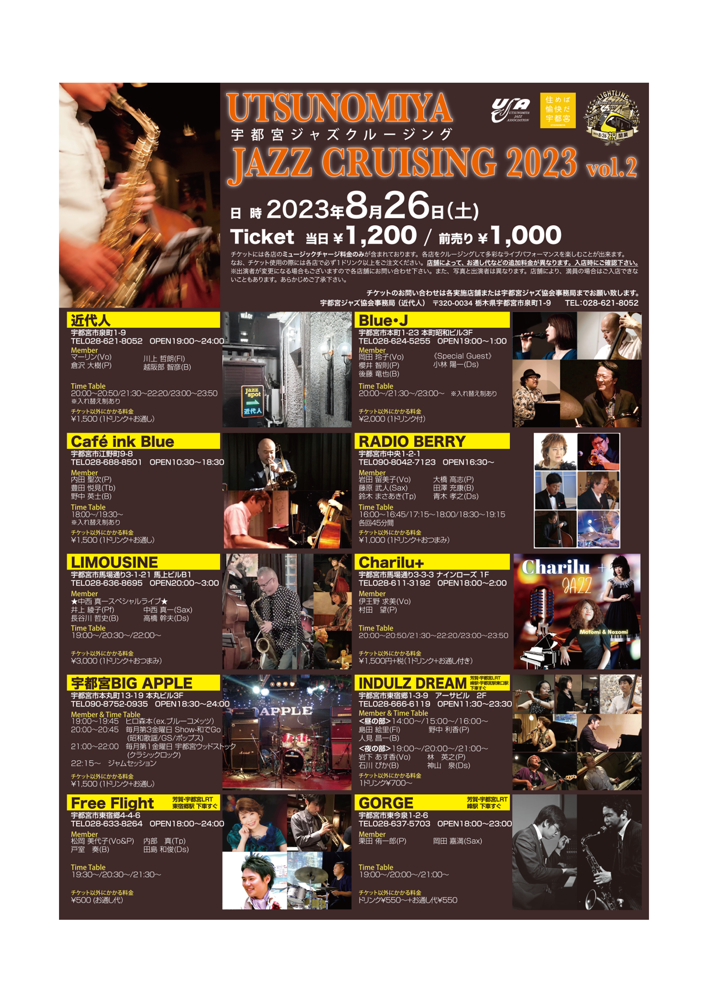 | 宇都宮BIG APPLE | 1.19:00〜19:45 | ヒロ森本(ex.ブルーコメッツ) | ||