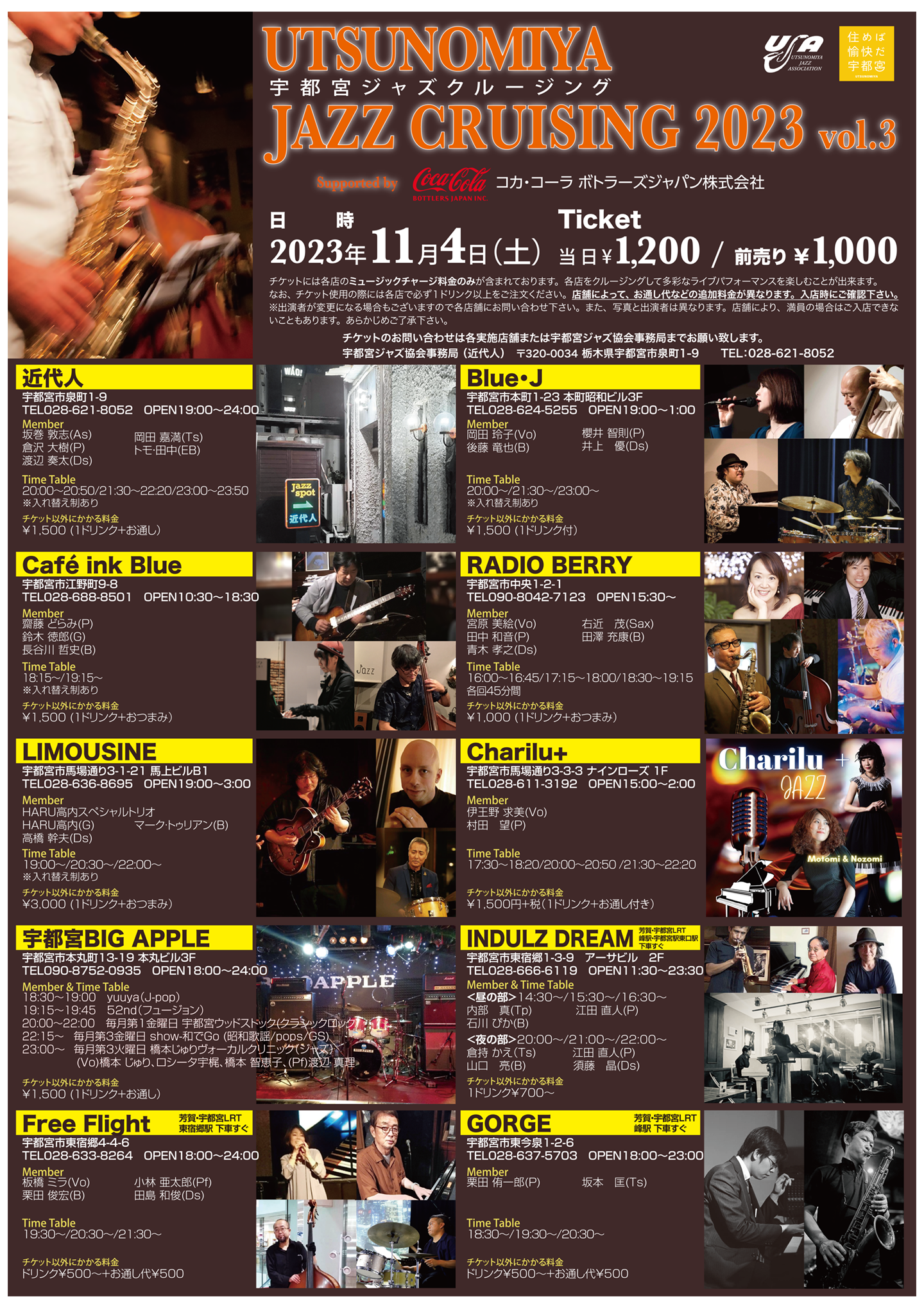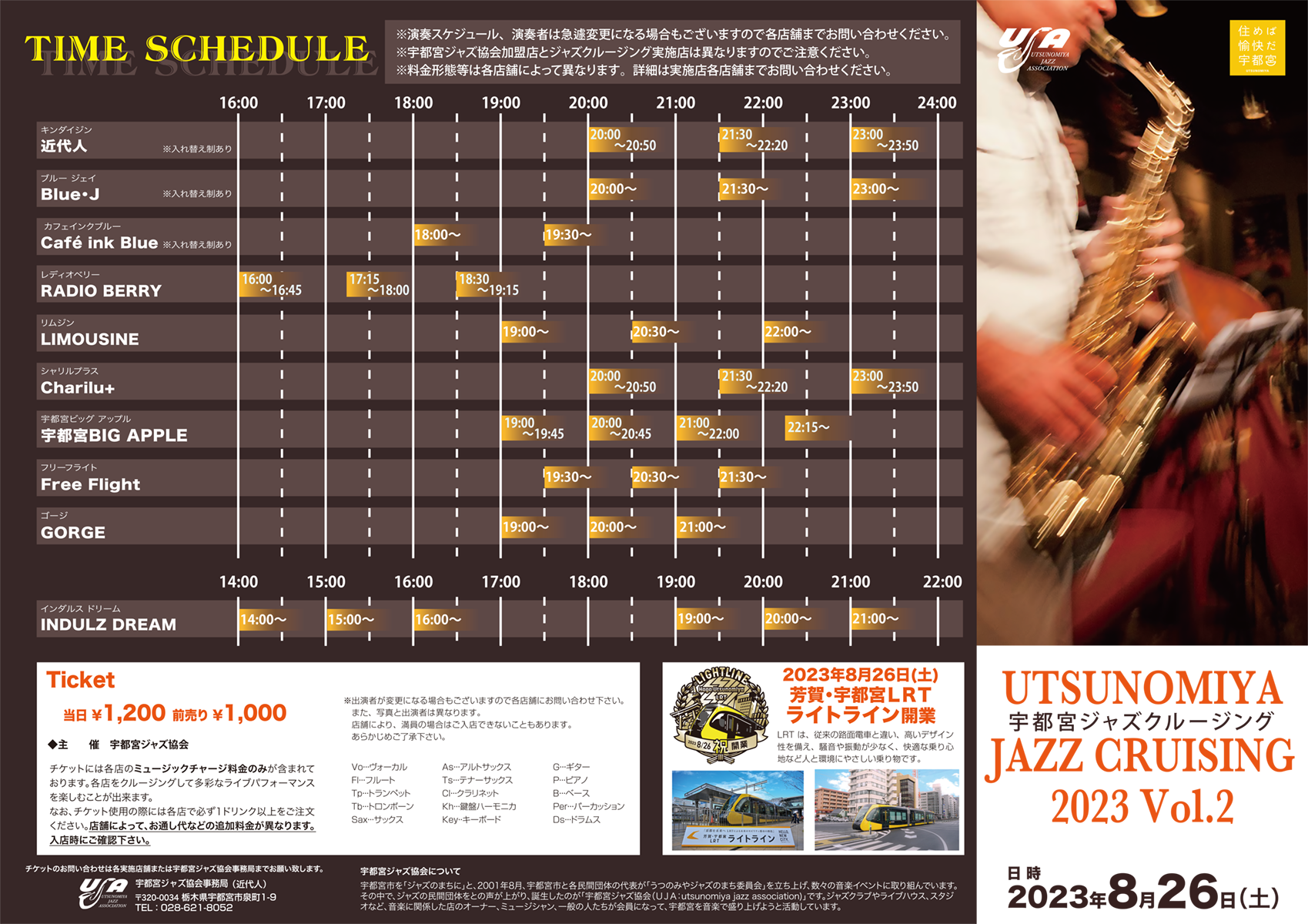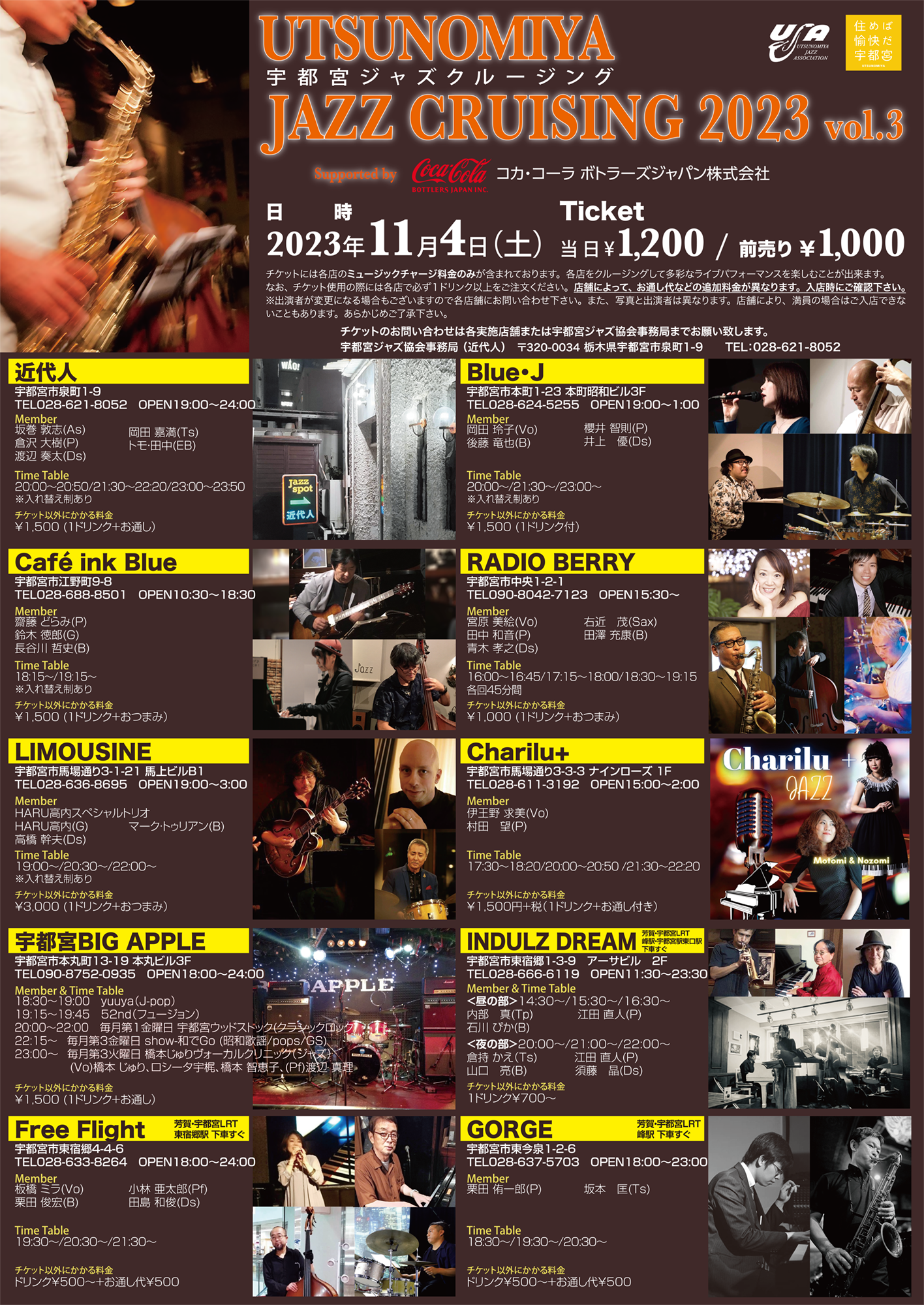 | 宇都宮BIG APPLE | 1.19:00〜19:45 | ヒロ森本(ex.ブルーコメッツ) | ||