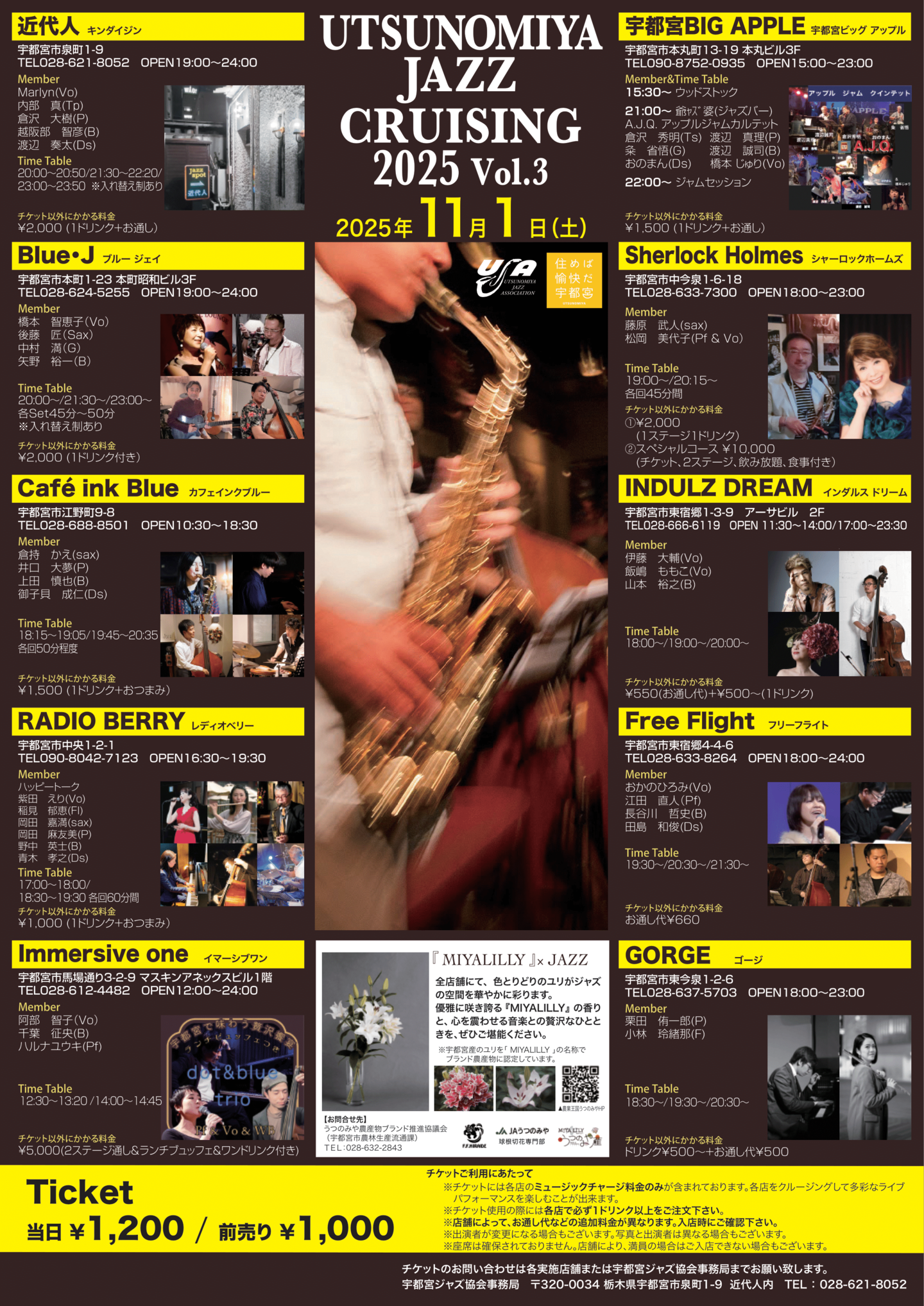 宇都宮ジャズクルージング2025 Vol.3の前売りチケット販売しております!!