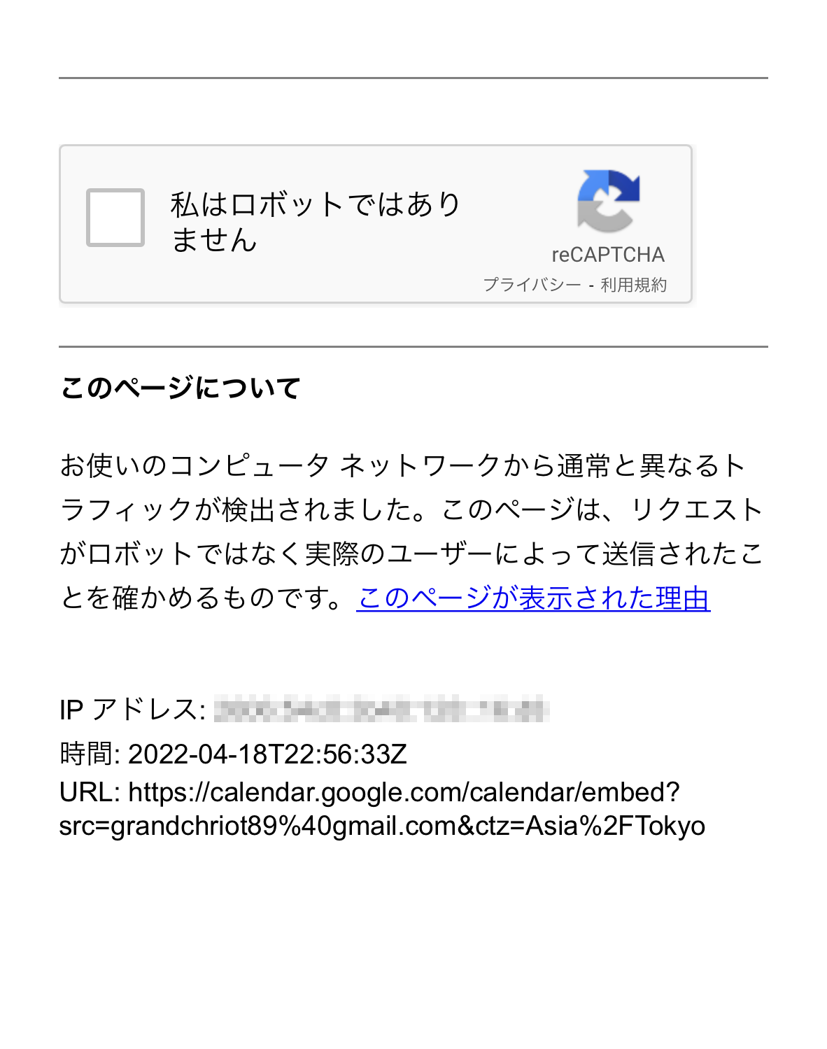 症状:Google側から認証画面が出てきてカレンダーが表示されない